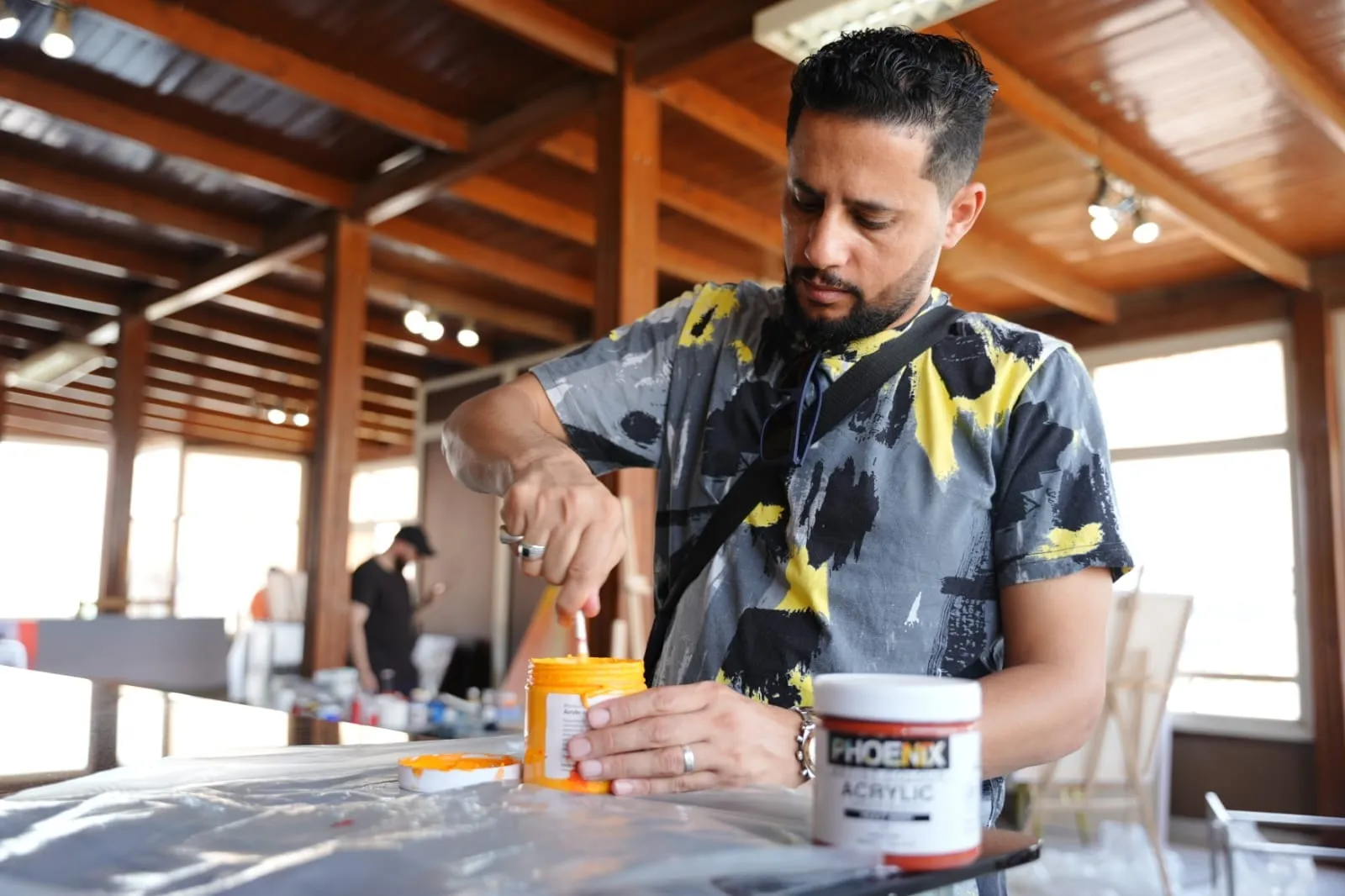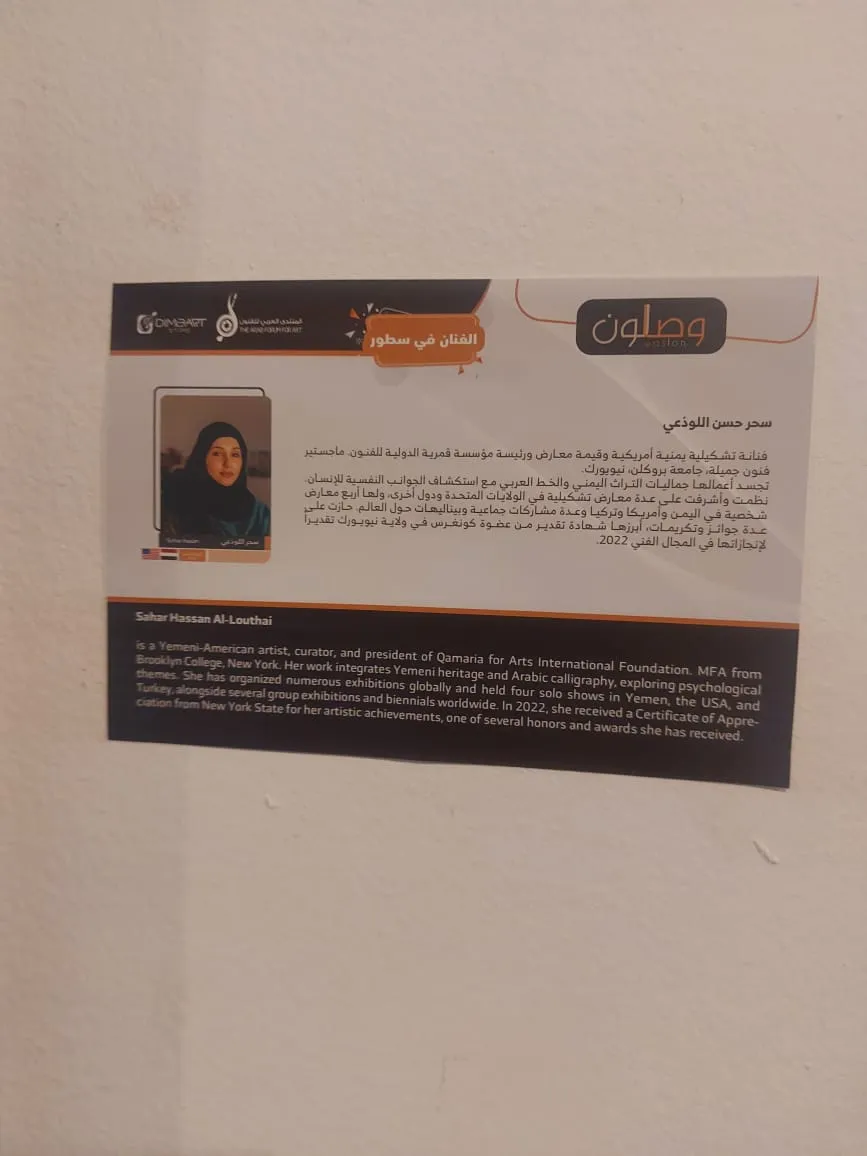 The exhibition, which is organized by the Arab Forum for Arts and will last for three days, is the culmination of the Waslun workshop and forum that began in early September and was implemented by the Arab Forum for Arts and “Dima Art Store”, under the patronage of Yemeni businessman Dr. Marwan Al-Khaled.
