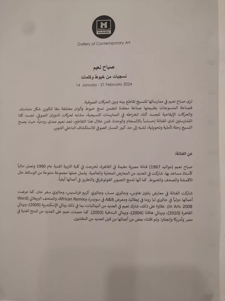 Sabah NaimWeavings of Threads & Words14/1-21/2/2024HGallery of Contemporary ArtMorning bliss, textiles made of threads and words