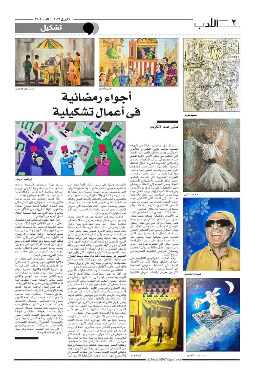 ART CORNER GALLERY exhibition The joy of Ramadan Participating artists Ahmed Al-Tobji Ramia Mawlawi Kamal Jabr Angie Mahmoud Rabab Ibrahim Magdy Sadawi Adham Lotfy Roman Samir Muhammad is a ruler Sorour Alwani Mohammed Abdul Jalil Muhammad Effat Arwa Jumaa Anmar Alwani Said Badawi Ayman Abu Zaid Samir Abdel Ghani Mahmoud Asaad Iman Khattab Sherine Abdullah Marwa Adel George Al-Bahjouri Sherine Jawad Mustafa Al-Sheikh Jalal Jumaa Sherine Rajab Mona Noir Perfect wallet Shaima Shafi’i Maha Al Nahas Abdul Aziz Taj Maher Daniel Hassan Daoud Ghada Abu Sunna Neha Hatta Hassan Ghanem Hassan Farouk Ezzat Hamed Hani Bahman Dina Al-Shouni Christine Johari Hani Abdel Gawad Lara Muhammad