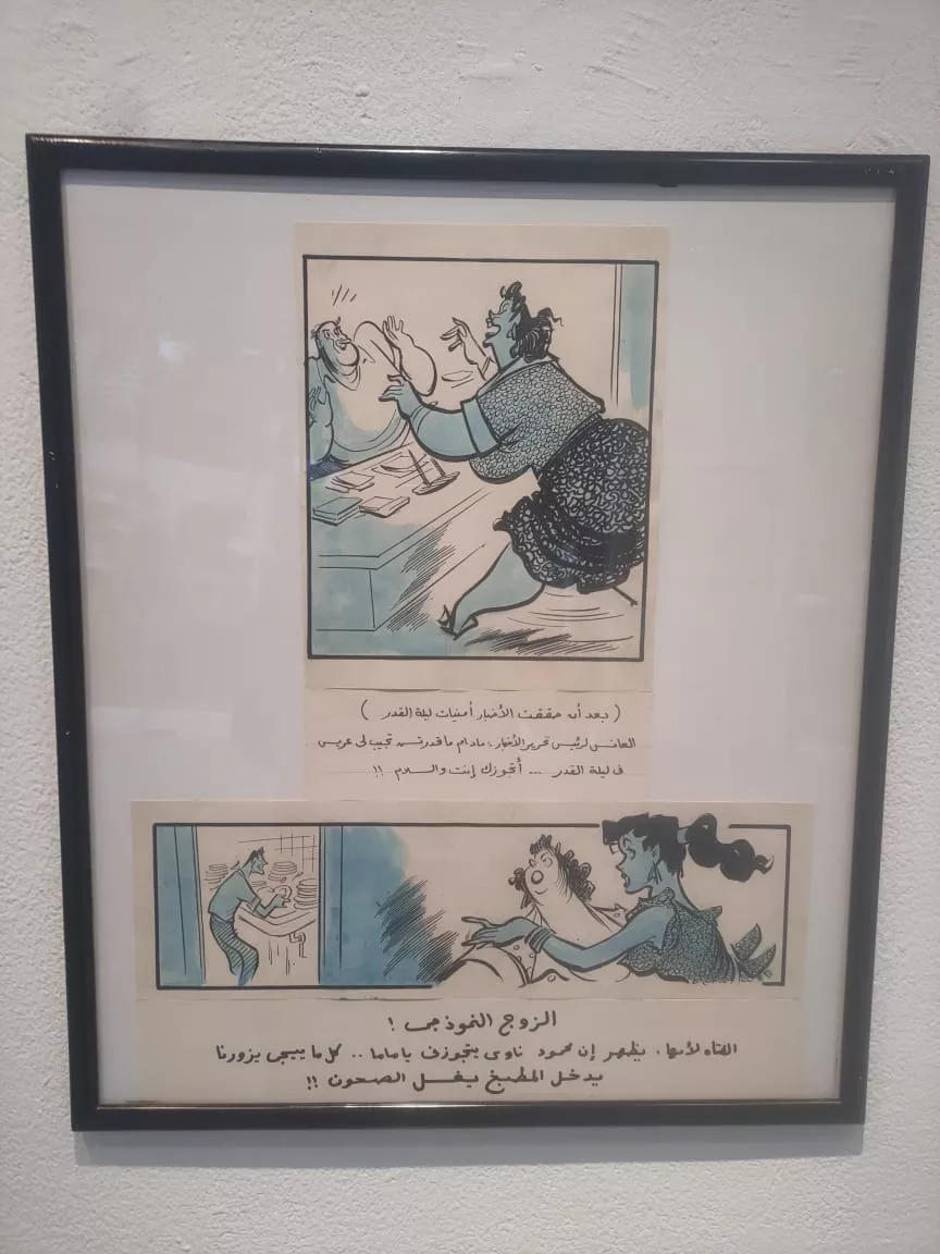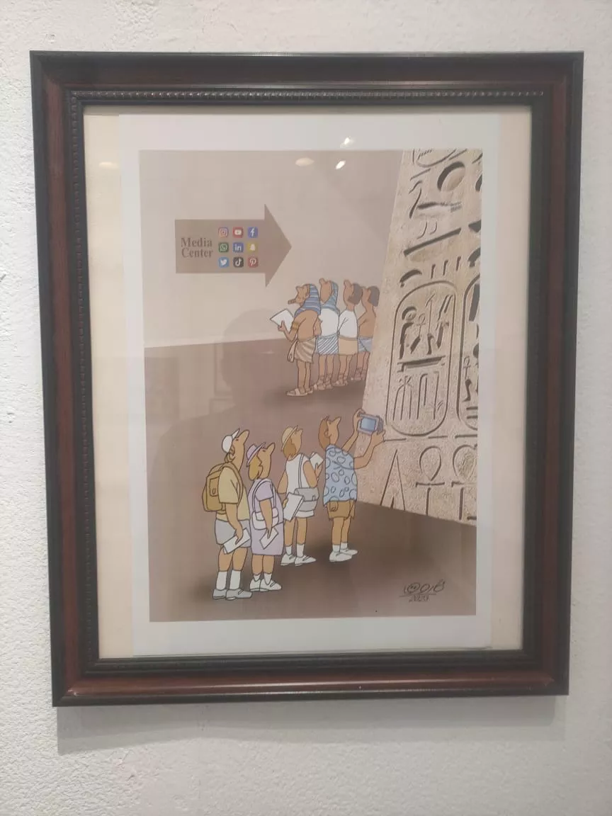 He added that this session is attended by a group of contemporary cartoonist pioneers and artists, headed by the artist Zuhdi Al -Adawi, the founder of the Egyptian Caricature Association, and the artist Abdel Moneim Rakha, the headmaster of the Egyptian cartoon school, and among the paintings offered by the works of the artist Abdel Aziz Taj, the honorary president of the Egyptian Cartoon Association, George Bahjouri , Ahmed Alawi, Faraj Hassan, and the late great artists Picar, Toughan, Mustafa Hussein, Salah Al -Laithi, Mohamed Effat, Juma Farhat, and other pioneers alongside most contemporary creative cartoonists.