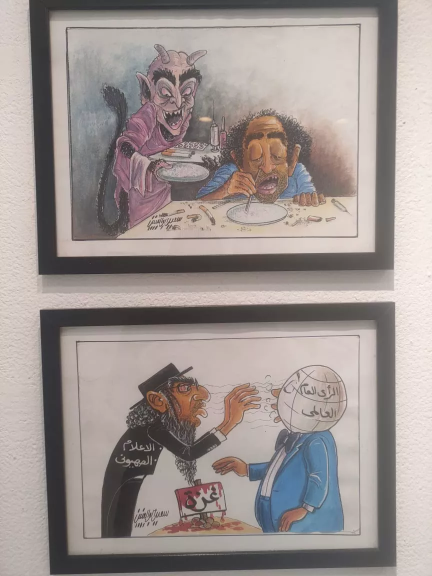The artist Fawzi Morsi, the general coordinator of the exhibition, indicated; This copy of the cartoon feast is a gift to our brothers in Gaza, the patient and the steadfastness who oppress their steadfastness, patience, sacrifices, and martyrs of the brutality of the occupier, and includes a set of works with the aim of supporting the Palestinian issue and solidarity with our people in Palestine.