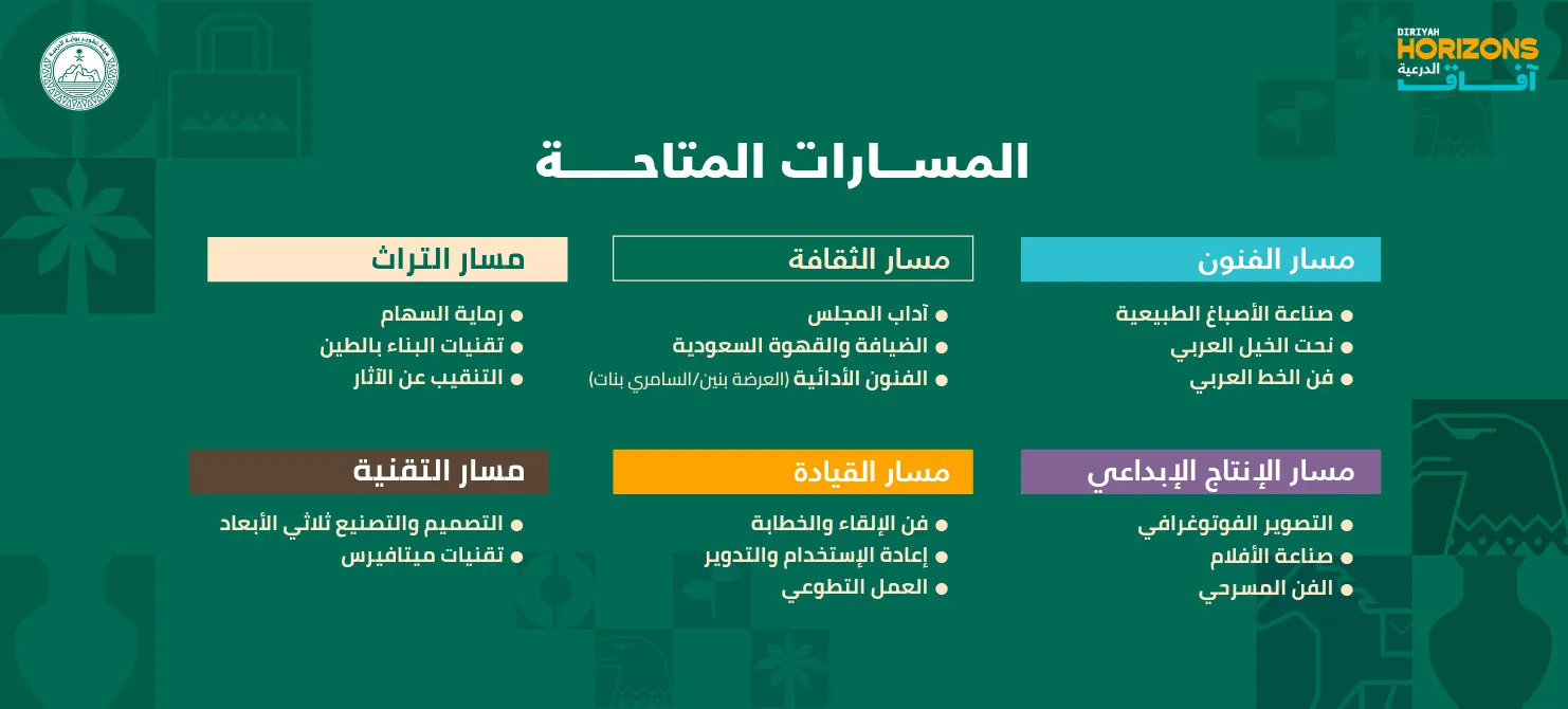 Gain experience, learn skills in multiple fields, and instill Diriyah values through daily interaction.