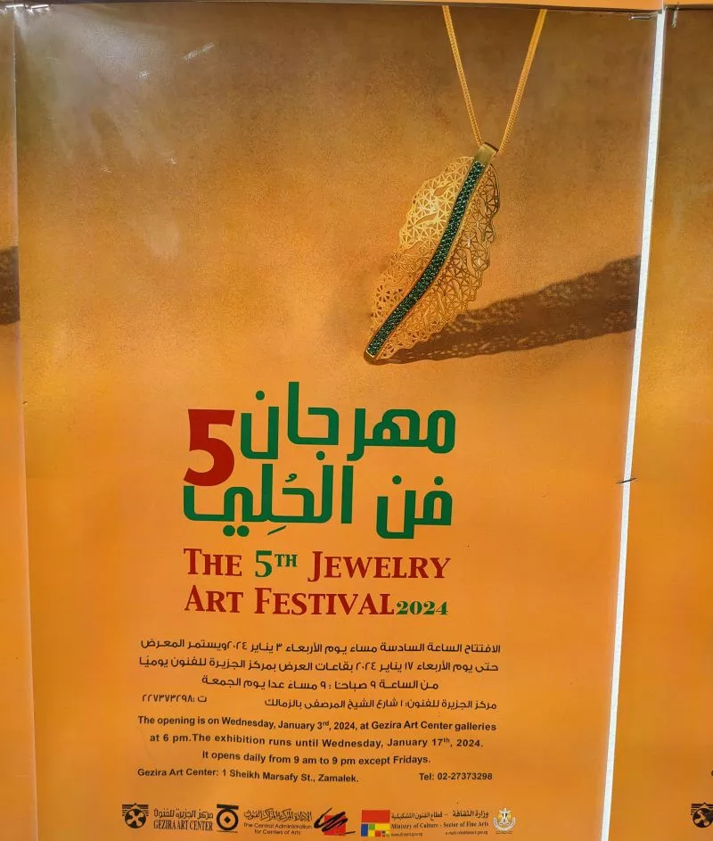 Under the patronage of the Minister of Culture, Dr. Nevin Al-Kilani, the Fine Arts Sector, headed by Dr. Walid Qanoush, will open the fifth session of the Jewelery Art Festival, at six o’clock tomorrow evening, Wednesday, January 3, 2024, in the halls of the Gezira Center for the Arts in Zamalek.
