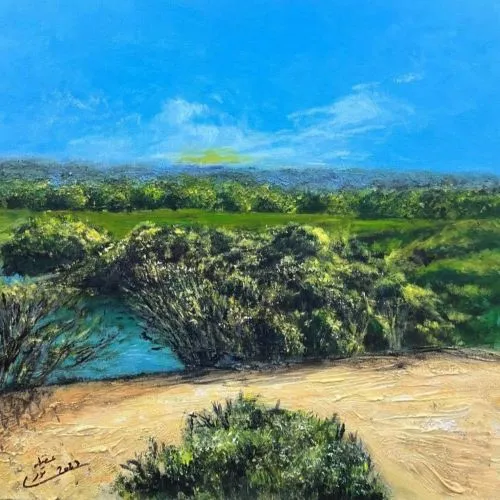 Artistic Statement Aqeela learned the ABCs of drawing at an early age. She used to spend her time as a hobby drawing in a small space behind the stairs of the house. She was no more than five years old at the time. All she had to do was paint and paper on this journey, and this stage that preceded her entry into the world of study. Her drawings caught the attention of her peers during her primary school years, and her features indicated a lot of promise for a girl at the beginning of her artistic journey. They were drawings full of life and diversity, benefiting from her proximity to that quiet coast overflowing with the unique environmental diversity that the Eastern Province in particular enjoys. She was visually saturated with the surrounding environment and aroused in her an artistic sensitivity to the aesthetics of the place and its contradictions, with its mixed feelings, and its conditions that change with the seasons and days. Aqila has a share of the fragrance of the earth, the purity of the water, and the wonder of the harvest seasons. She draws from here and there her artistic lexicon and her favorite subjects. Her imagination takes her to the sky, but she does not forget to return to the earth, where her roots extend deep into history, and the depth of the sea burdens her memory with images, imaginations, and beautiful memories.
