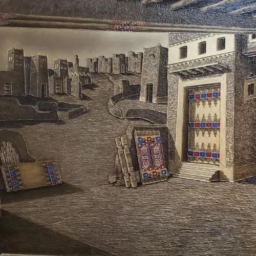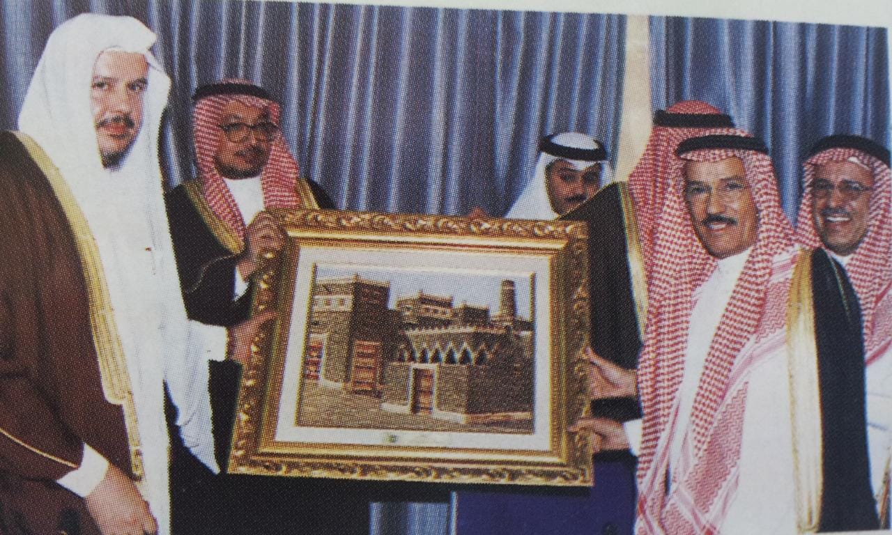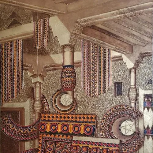 “Ushaiger” is the city where Abdul Mohsen Aba Hussein was born in 84 AH, and his artistic tendencies appeared there during the elementary stage, and he owes the credit for developing those tendencies to the art education teacher at the time, Mr. Abdul Rahman bin Muhammad Al-Malik, as he played a major role in his love of drawing, especially the clay houses that characterized that period, as the teacher was specialized as a professor in this field in gypsum engraving in councils and buildings in general. “Aba Hussein” was not satisfied with talent, so he polished it with scientific study, so he obtained a bachelor’s degree in art education from King Saud University. Then he worked on developing the study with work, so he participated in various exhibitions of King Saud University during his studies there, as well as exhibitions of the Culture and Arts Society, the General Presidency of Youth Welfare, in addition to the exhibition (The Kingdom Between Yesterday and Today) in a number of European countries and the United States of America, in addition to many local exhibitions. The beginning of "Aba Hussain's" artistic career was ordinary like other artists in this field, where the usual style is based on conveying reality in a way closer to photography, then that changed after his visit to his teacher "Ali Al-Rizaiza" as he liked the style he works with, so he followed it for some time, then he started from it to his own style based on documenting the decoration from its original sources and transforming it into artistic paintings. Then he made the "door" with all its decoration a direct reference and not an inspiration that accepts distortion, and for this reason he considered it a basis and starting point for his works with its original texts. He intended by that to make his paintings a documentation of reality, history, and researchers in this field. Then came the stage of dissemination, in the work of the plastic artist, and "Aba Hussain" attributes the credit for it to the support and encouragement of the Custodian of the Two Holy Mosques, King Salman bin Abdulaziz, may God protect him, when he was Minister of Defense, then His Highness Prince Faisal bin Abdullah bin Muhammad, the former Minister of Education, and Professor Abdul Rahman Al-Juraisi, the former President of the Chamber of Commerce, and Engineer Majed Al-Shawi, in addition to a number of influential figures in his artistic career. The distinction of Aba Hussain's works has made them collectibles for many entities, most notably: King Salman bin Abdulaziz Palace, King Fahd International Airport, the Ministry of Defense, the Command and Staff College, the Institute of Administration, King Salman bin Abdulaziz Social Center, King Abdulaziz City for Science and Technology, the Strategic Storage Project, King Fahd Library, the Chamber of Commerce, the National Festival for Heritage and Culture (Janadriyah), the Saudi Artists Exhibition (Tunis 1418 AH), and the Dutch Bank (Van Gogh) Exhibition at the Kingdom Tower 1422 AH. He also participated in the restoration of the distinguished village in the city of Ushaiger, in addition to a number of other distinguished exhibitions and events. Aba Hussain also presented some of his works to former French President Jacques Chirac, Crown Prince of Belgium Prince Louis Philippe, former German Chancellor Gerhard Schroeder, Malaysian Prime Minister Mahathir Mohamad, Prince Faisal bin Abdullah bin Mohammed, Prince Faisal bin Abdullah bin Turki, and Prince Abdulaziz bin Fahd bin Abdulaziz. Finally..