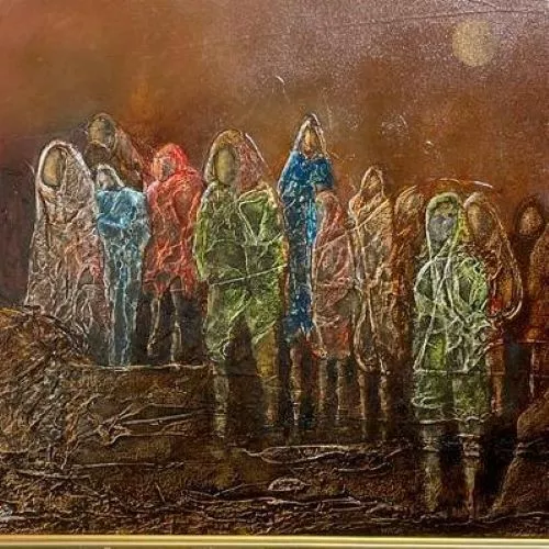 Exhibition (Victims of the Wreckage), which included 40 paintings that were displayed in the Public Library in Rome in 2005. The paintings embodied the suffering of thousands of children under deprivation, hunger, disease, torture and exploitation.