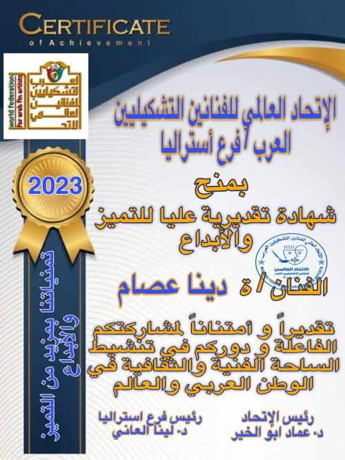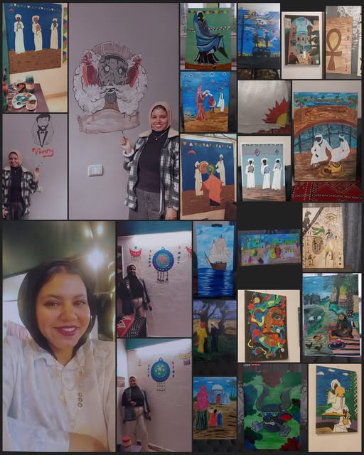 Dina Essam 28 years old, born in Aswan, residing in Cairo. Mokattam...Bachelor of Information and Systems A visual artist, digital painter, and founder of the Creative World Fine Arts Exhibition She participated in an exhibition as a painting exhibitor at the Absolute World of Art Forum As a guest of honor in more than one exhibition, one of the most prominent of them Pioneers of Fine Art Forum and Masoud International Culture Exhibition And the arts, the general headquarters of the Nahl Al-Ilm Foundation for Development Development and exhibition in Egypt is good 2 She appeared on more than one TV show, including: Alwan program on Egyptian TV on Channel 2 And the creativity program on the Nile Culture Channel And the Sami and People program on the Health and Beauty Channel I was written about in more than one newspaper and magazine, most notably M Al-Haqiqa newspaper, Saada News from the Emirates, the Daily Press Egypt newspaper, the neutral newspaper, and Al-Fan newspaper.. I have been honored more than once, most notably M Honorary doctorate... Shield of the Medal of Peace and Giving