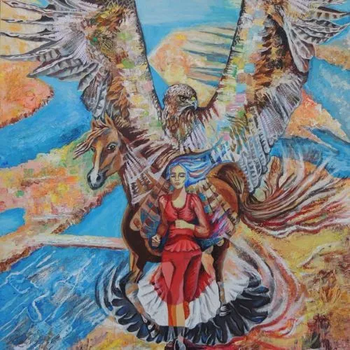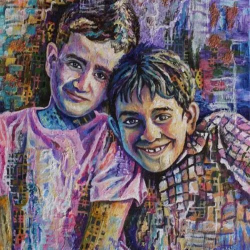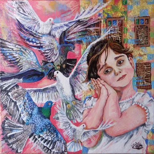 - A painting between past and present. - A painting of the Dove of Peace. - A painting of Best Friend. - A painting of a moment of trust. - A painting of the clock ticking, I await you. - A painting of the Suez Canal, with willpower we live.