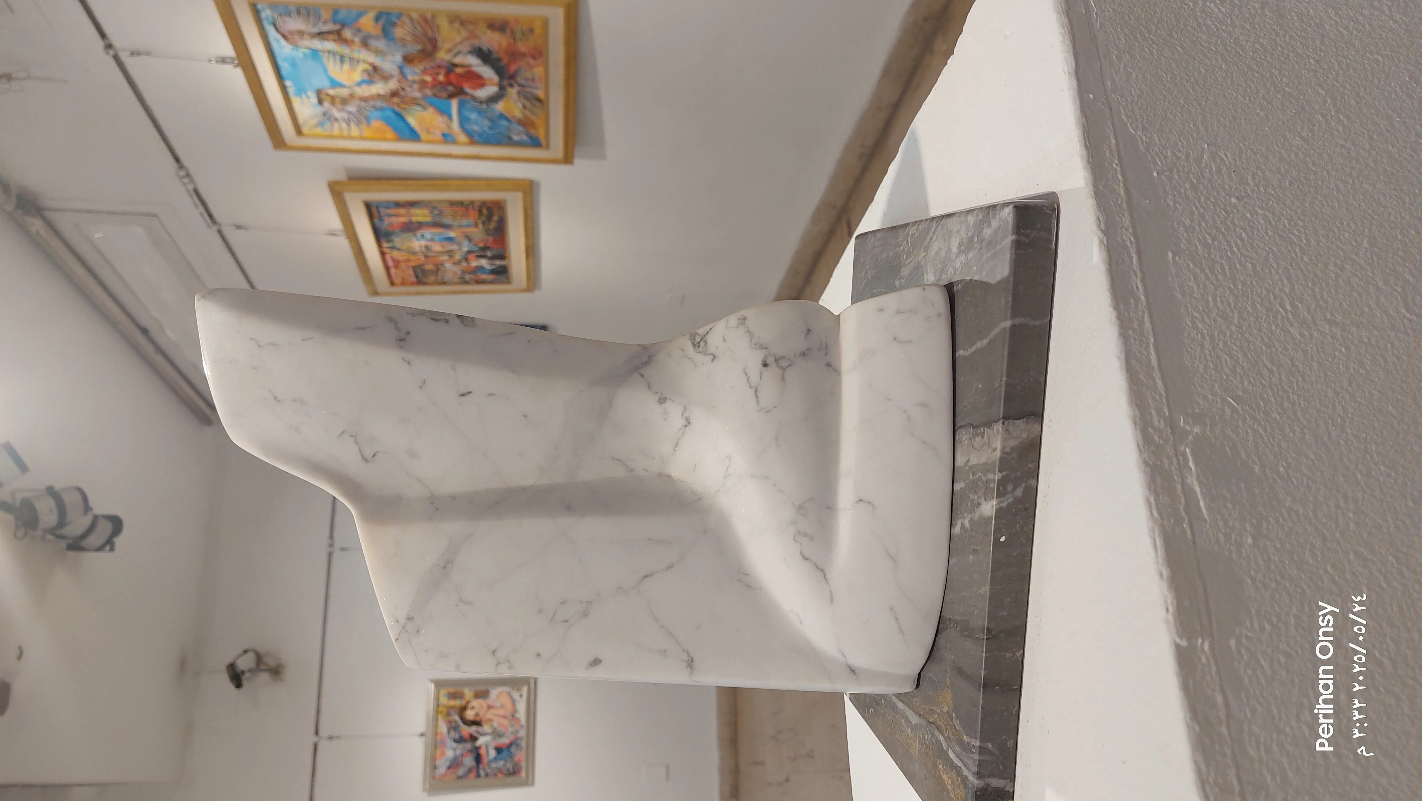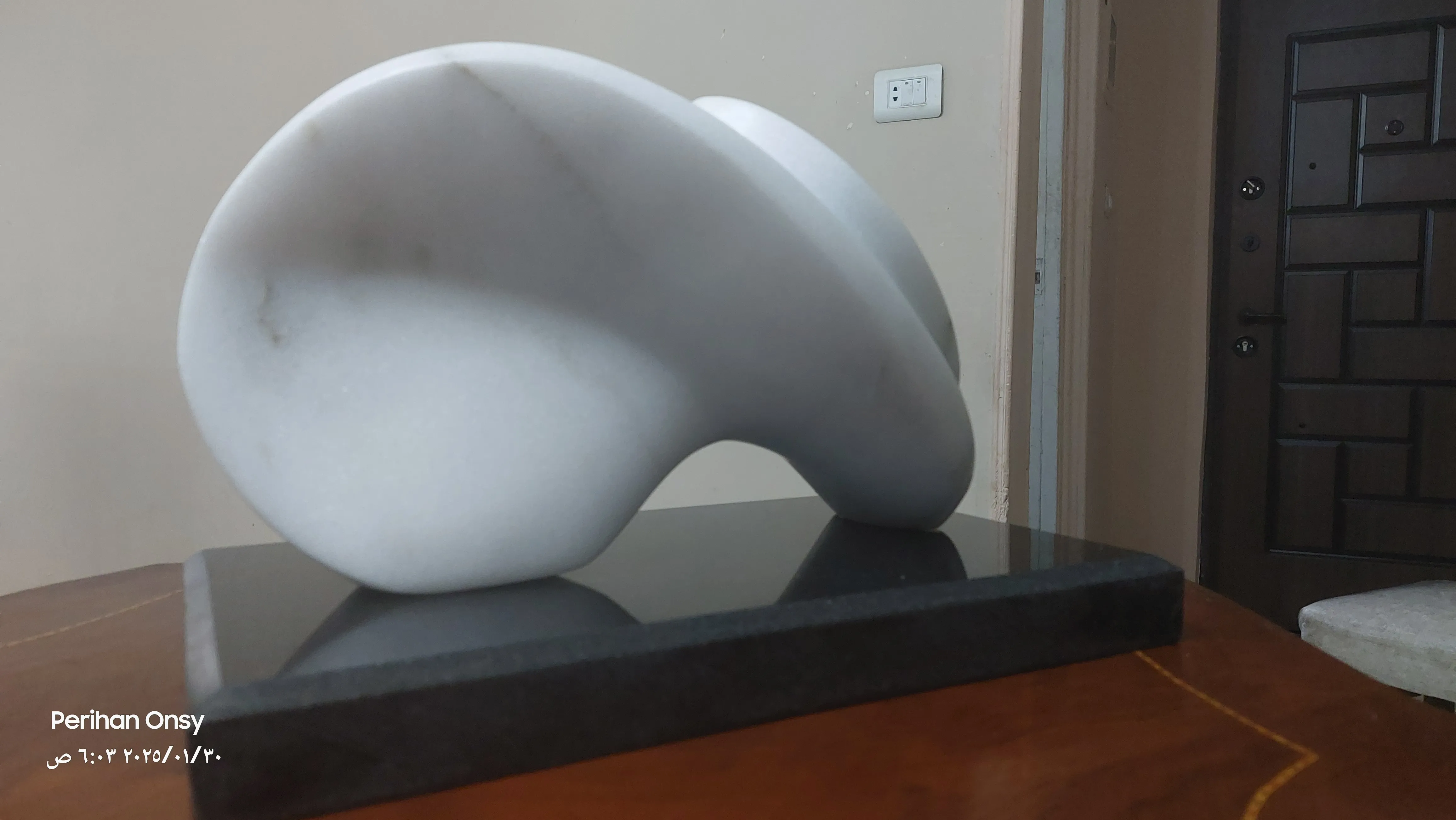 - The Bloom sculpture, representing the spiral movement of the universe, 2024. - The Infinite Thinking sculpture, representing a woman's face and the movement of two arms in two different positions. - A group of sculptures inspired by movement in the universe, nature, and the calla lily flower, made of marble. - The "Come Play" sculpture collection, three interactive sculptures. - A portrait sculpture of my professor, Dr. Mahfouz Salib. - The "Holding On" sculpture, an abstraction of a person inspired by ancient Egyptian civilization (marble). - A Ramadan painting, "Blessings Unite Us" - A painting inspired by El-Abnoudi. - A composite of three paintings, "Each of Us Has a Look"