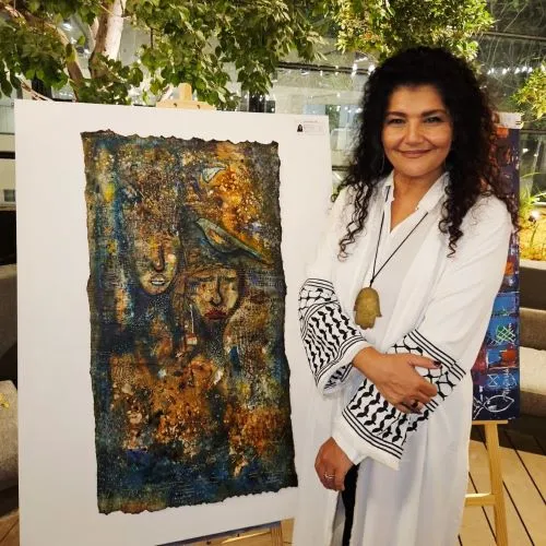 Majida Nasreddine - Lebanon/United Arab Emirates Visual artist and member of the Emirates Fine Arts Society since 1995. She considers nature her primary teacher and inspiration. She has explored various schools of art until she reached pure abstraction, where the impact of an object becomes more eloquent than its presence. She works with the music of color, as if she hears it more than she sees it. She has experimented with black ink on canvas, viewing the canvas as an old wall on which she writes whatever nostalgia and memory come to her mind. Throughout all her experiences, she has been like someone searching for a homeland and a refuge. Nasreddine began drawing with charcoal, coffee, turmeric, onion peels, and beetroot from a young age, due to her inability to acquire the colors she wanted at the time. She made houses from old magazines and shapes from candy wrappers that are still fresh in her memory. She had no idea this was called recycling or sustainability. Majda is interested in experimentation, using unconventional materials such as coffee grounds, used tea bags, and many other materials that no one would think of, in addition to watercolors, acrylics, and ink. She has held six solo exhibitions in Lebanon and the UAE, and has participated in hundreds of group exhibitions locally and internationally, including the Sharjah Biennial, the Tehran Biennial, and the Sikka Art Festival, to name a few. Last year, her works related to sustainability were selected for an exhibition as part of COP 29, which was held in Azerbaijan and then traveled to Bahrain, Italy, and then London. She also participated in the Pisa Symposium in Italy and was honored as a guest of honor at the first edition of the Dubai International Art Festival. She was recently honored in Morocco for her long artistic career at the first edition of the International Academic Forum for Fine Arts, organized by the Art Wave Association.