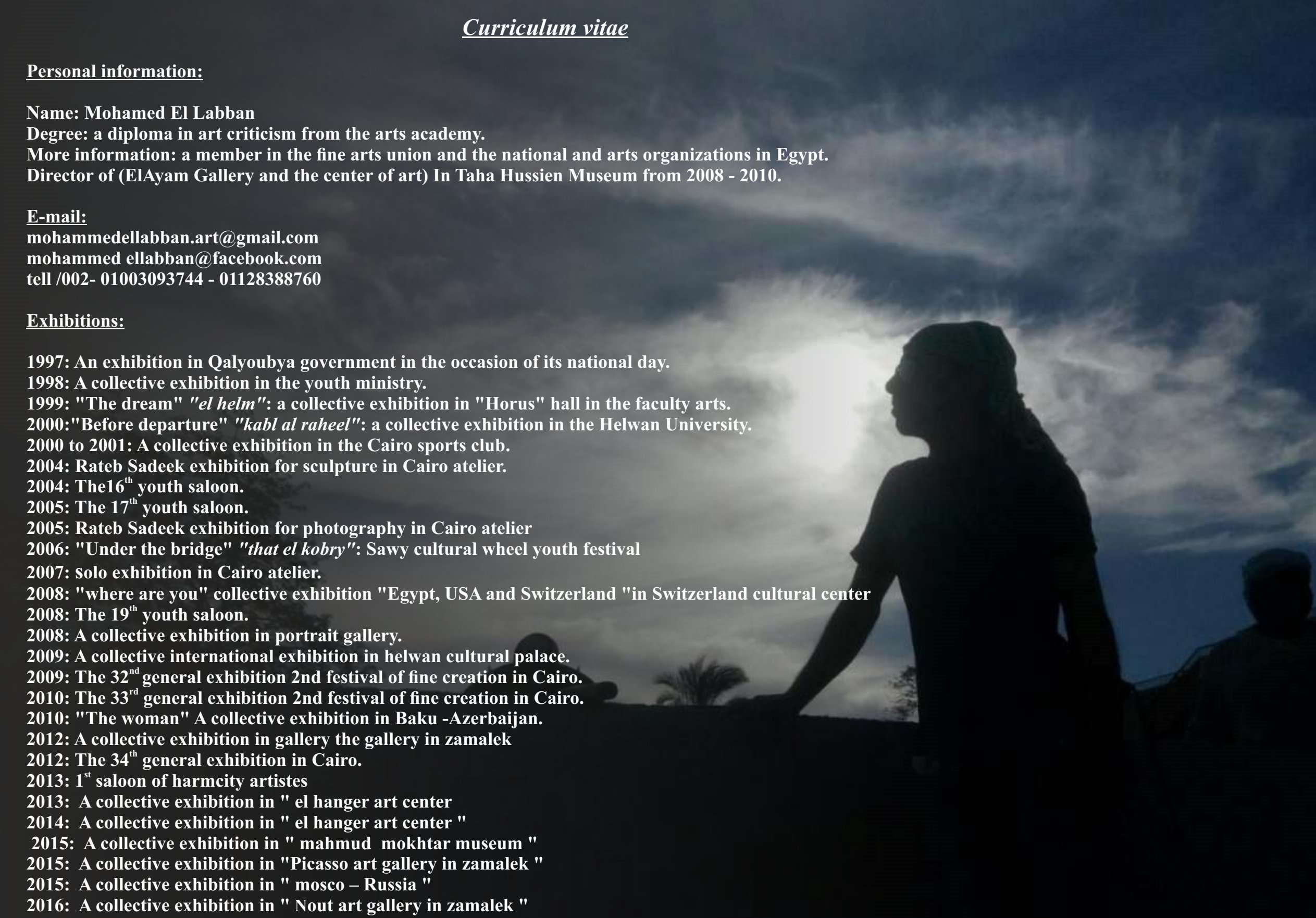 More information: a member in the fine arts union and the national and arts organizations in Egypt.