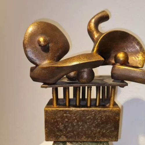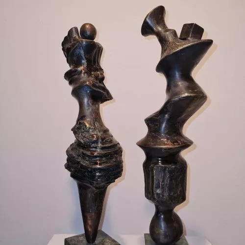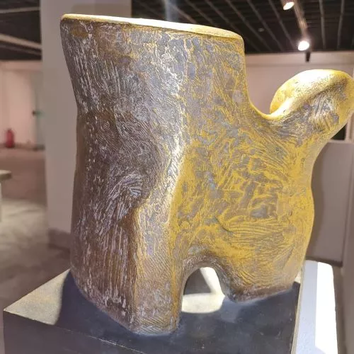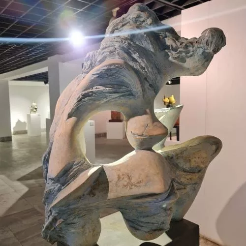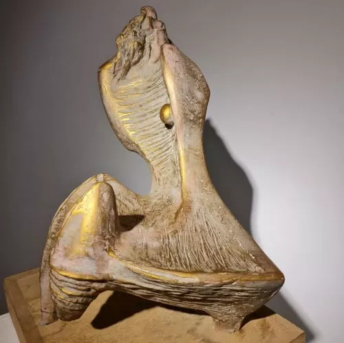 - The artist Ahmed Abdel Aziz follows an abstract style, his iconography tends towards highlighting the relationships on which the universe is based and life arises, and these relationships are parallel under the surfaces of things and assets, and they cannot be disclosed or realized except by the artist’s procedures and special treatments, where the scientific and cosmic laws are compatible with the method The artist in crafting, in order to move what is inside the silent blocks of hidden and buried energy and what hides under the surfaces, and unleashes a special language, even veiled music and sounds that are from the origin of the universe. The sculpted work of art becomes a field and field that allows the recipient and the viewer a close opportunity to touch the depth and essence of life, and to get closer to the original, essential and even powerful meanings that serve as the balance that controls the relationships between things, meanings, sensations and our sense of beauty. - The creative work of Ahmed Abdel Aziz depends on the preparation and in-depth observation of all the observations that mean to him in life. He is a very good and persistent viewer in his observations and links between scientific observation and the poetic or emotional vision of assets and events, with their various developments and their multiple images. In his culture, he combines elements The sculptural form is charged with a very high energy, with which it can attract masses full and full of meanings and secrets, which attract and captivate the connoisseur on a creative journey and discover the mystery of the beauty hidden behind rough surfaces or The smooth masses generated from the statue are the daughter of the earth, mountains, air and water. - But Ahmed Abdel Aziz, who loves the civilization of Egypt that dives into the depths, can never separate from these visions and treatments that overflow with the civilization and creations of the ancients, but they are present in the depths of the fabric of his emotions, ability and creative method, but the sculptural work of Ahmed Abdel Aziz searches in man About the most beautiful and powerful thing that distinguishes a person, by which he stands against injustice, ugliness, and everything that threatens man. The sculpted work has a very intense compilation of an adult charged human condition that raises everything that destroys noble values, and establishes all principles that preserve a person's sense of beauty in life. Dr.. Ahmed Abdel Aziz