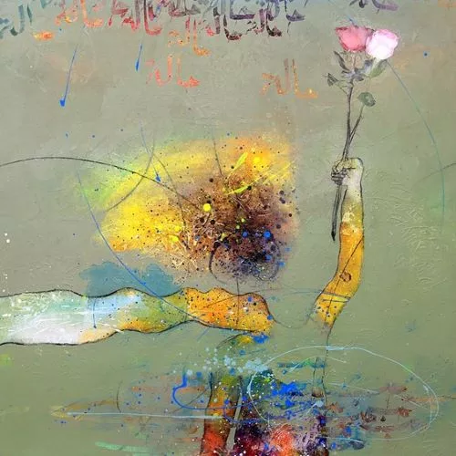 I see that the Arabic identity of my work was formed after the word “love” was added to it and repeated until it became an icon in which I distinguish my soul within the artistic work. My expression of this word, which I see as synonymous with Arab identity in my view, is the way through my paintings that I can defend the true values of Arab identity.