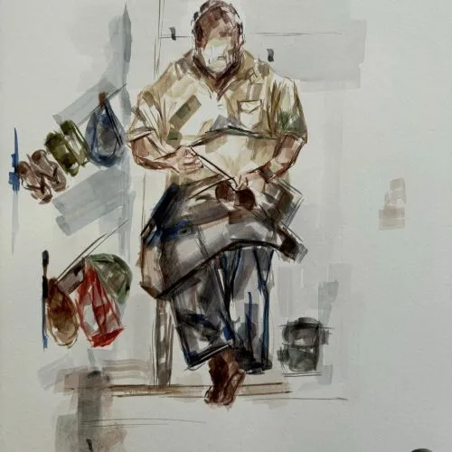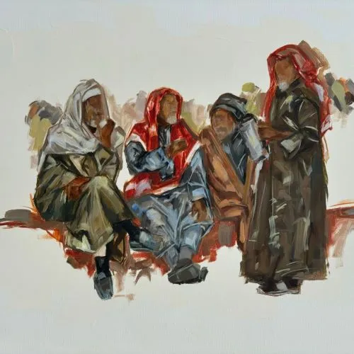 Through her work, Jamila seeks to express her thoughts, feelings, personal experiences, inner reflections or her search for herself, and to use the artistic process as a means to discover new aspects of her personality or reconcile with daily life experiences. In her work, Jamila uses a simple artistic style with brush strokes as a means to record daily or cultural events, by drawing scenes of daily life or what expresses culture.
